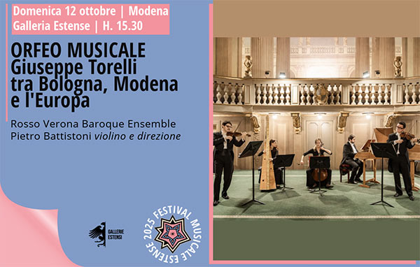 Giuseppe Torelli tra Bologna, Modena e l’Europa Rosso Verona Baroque Ensemble Pietro Battistoni violino e direzione Questo concerto è un’occasione imperdibile per riscoprire Giuseppe Torelli, un raffinatissimo compositore di cui si ascolteranno brani straordinari, molti dei quali custoditi in manoscritti della Biblioteca Estense, proprio a pochi metri dalla Galleria. La sua musica avrà come compagni […]